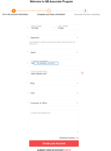 手順②:GearBest Associateに登録しよう